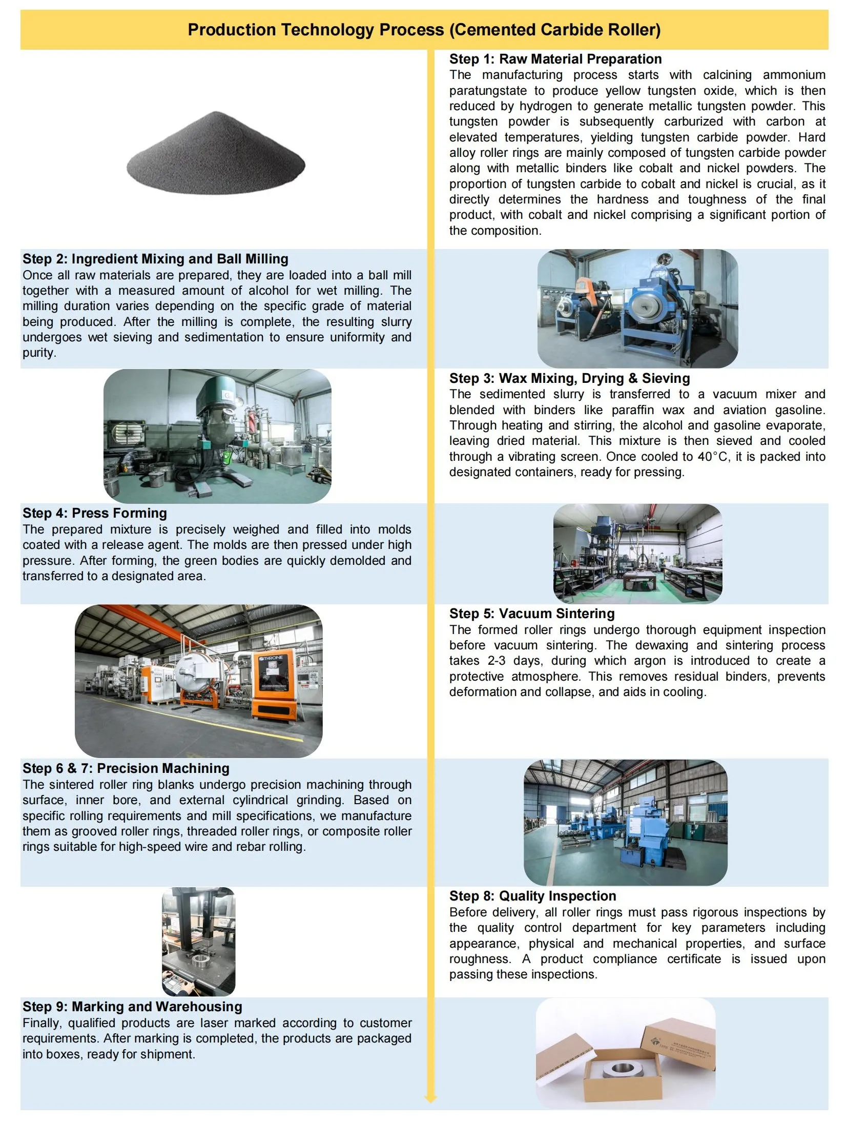 Vòng cuộn cacbua xi măng (còn được gọi là Vòng cuộn cacbua vonfram) có tính dẫn nhiệt tuyệt vời và vượt trội hơn các cuộn gang và thép tốc độ cao thế hệ đầu tiên về khả năng chịu nhiệt, chống mài mòn và độ bền, với mức giảm độ cứng tối thiểu ở nhiệt độ cao. Được phát triển cùng với các máy nghiền thanh dây tốc độ cao, chúng hiện được ứng dụng rộng rãi trong các khâu hoàn thiện để sản xuất dây, thép cây và thanh thép biến dạng tốc độ cao.